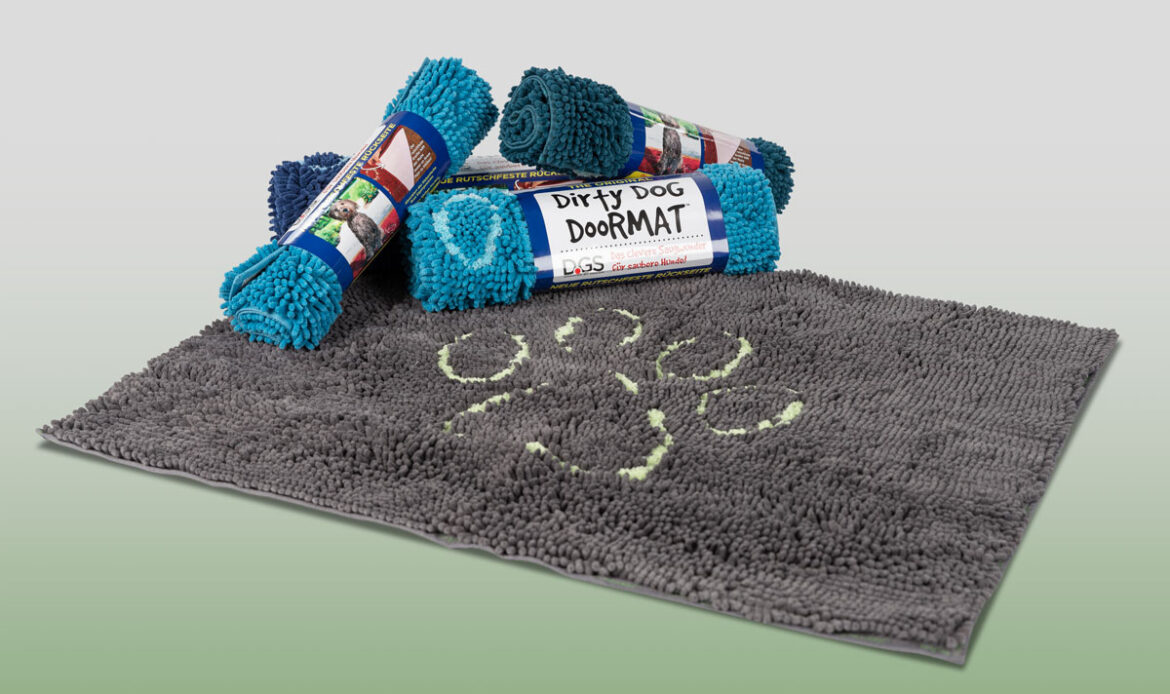 The Dirty Dog Door Mat is a non-slip mat made of microfibers that will dry five times faster than an ordinary rug.